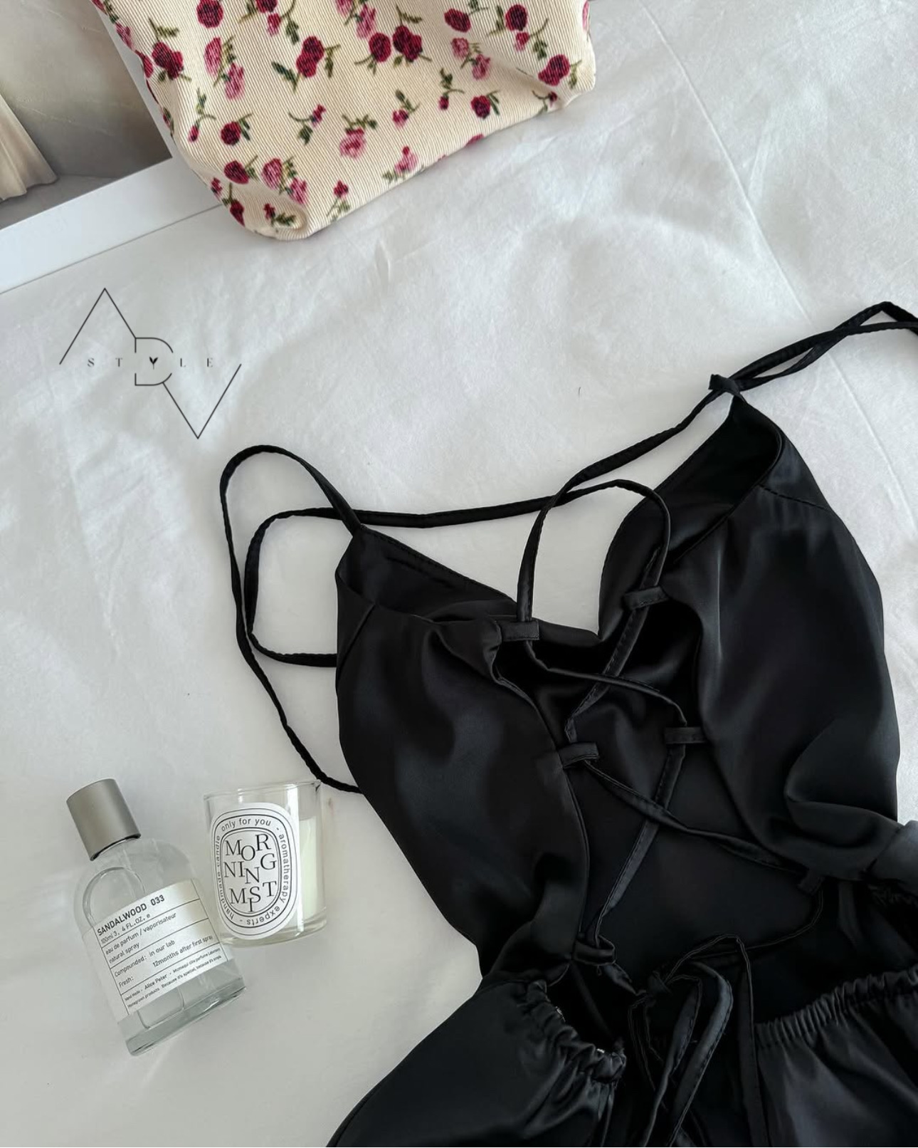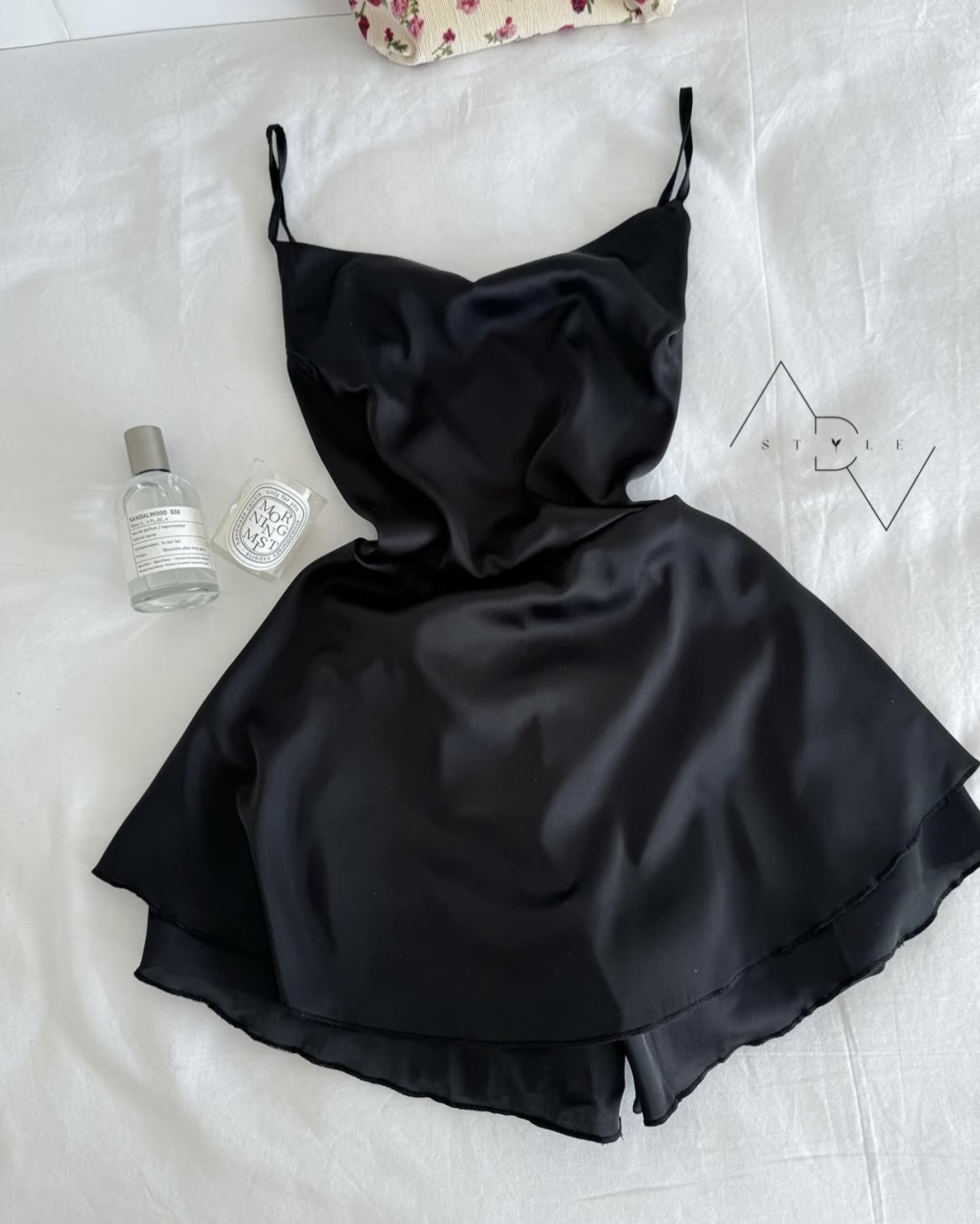 پیراهن ساتن پشت بندی عروسکی یقه هفت